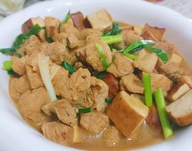 放入豆泡豆干翻炒放盐生抽蚝油调味,加适量水炖,煮20分钟。