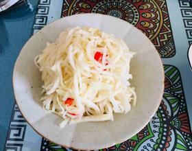1.苤蓝切丝后用盐腌一下,攥干水分,可去除异味。