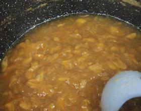 熬出大多水分,然后加冰糖,继续熬。要开小火熬制,边搅拌。