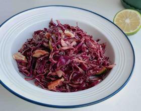 调味料根据自己的口味添加,紫甘蓝切的越细口感越脆,青柠也是提味,加上去口感更佳清新