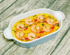 撕开保鲜膜,放入虾仁继续蒸3分钟