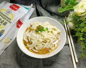揉面的时候面团要比饺子面团还硬一点点,所以醒的时间也比较长一点,这就是面条劲道的关键。