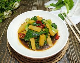 - 8. 10分钟后,加入小白菜,翻炒均匀,再炖煮2分钟