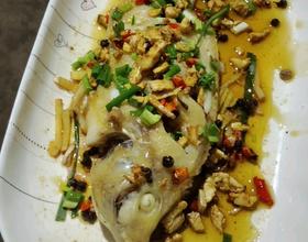 把炒好的料汁浇在鱼身上,撒上葱花,上桌