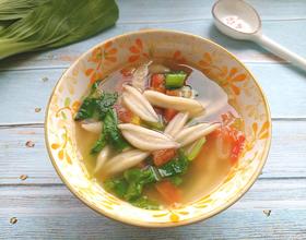 加水煮开后,放入用剪刀剪的小面条煮熟