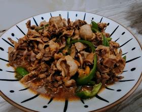 - 19. 放少许鸡精和青椒,翻至青椒断生即可