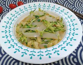 - 11. 黄瓜和凉皮放入盆中,再放入生抽、醋、香油、辣椒油、蒜末、小葱、盐、白糖、鸡精、芝麻酱搅拌均匀