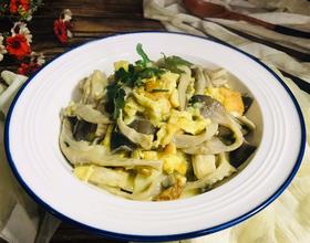 再起锅热油,放入葱花,倒入蛋液,炒熟