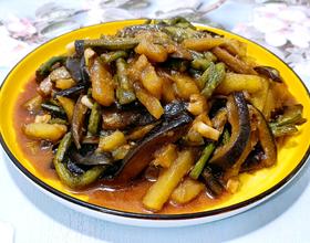 - 7. 锅热加色拉油,下入茄子,快速翻炒。