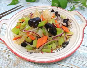水烧开把银耳、木耳、芹菜、胡萝卜都焯熟