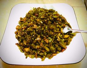 1.肉末炒干水分再放葱姜蒜、干辣椒炒出香味。