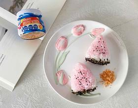 底部包一点白米饭,捏成三角形蘸拌饭海苔。