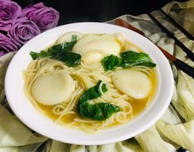粑儿浮上水面后,放入挂面,拌匀煮至断生