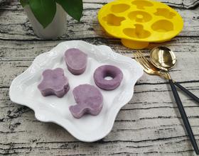 先将一部分的紫薯米粉放入模具底部