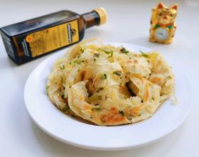 取出放盘中,用筷子在香葱油饼上夹夹,使其丝丝松散相连