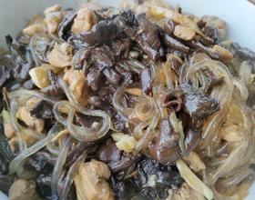- 8. 添开水下蘑菇粉条开始炖,大火烧开转中火,粉条容易粘锅不要翻