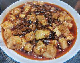 热油锅下肉末后放豆瓣酱,小火翻炒后下豆腐,放入调好的调料汁拌匀再烧几分钟