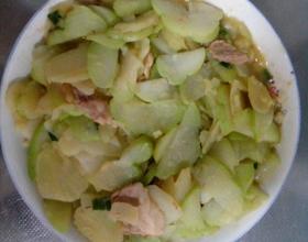 将土豆,佛手瓜切片(佛手瓜的汁液伤手,最好隔着塑料去切)肉切片,切葱姜。土豆放水里去淀粉。