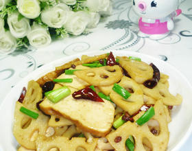 - 7. 接着,下入焯好的莲藕翻炒一下。