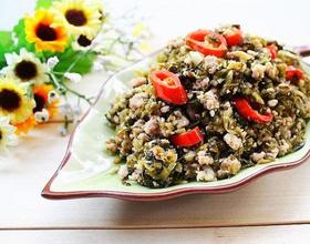 材料:猪肉末、雪里蕻(雪菜)、红尖椒、独蒜