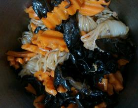 加入胡萝卜木耳,各种调料,炒吧~然后就出锅了~