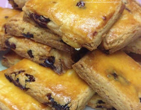 - 6. 将小长方形排入烤盘,并在表面刷上一层打散的蛋液,放入预热好的烤箱,上下火180度,烤15分钟,直到表面金黄色。