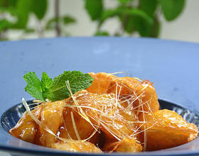 一、全程以小火为主二、如何判断五成热油:手放在锅上方能感到明显的热气,放入一块土豆,周围有明显的气泡就OK了,不要一次放入太多的土豆,以免拉底油温三、油和糖的比例约为1:1四、土豆不要切太大块,这样炸制时间也会相对短一些五、最好在盘子里刷上一层薄薄的油,再将土豆装入,便于清洗