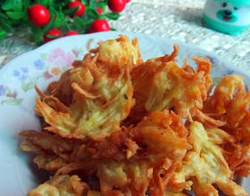 分别取适量的地瓜糊放进烧好油的锅里油炸,