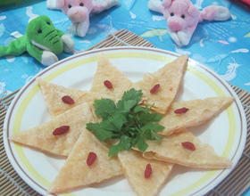 - 11. 盖上另一片春卷皮,用手掌心按压紧。