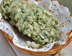 煎好的槐花饼盛出,趁热食用味美清甜。