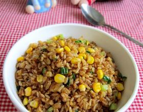 食材:鸡蛋 米饭 酱油 玉米粒 香葱 黄瓜 花生油 盐 胡椒粉