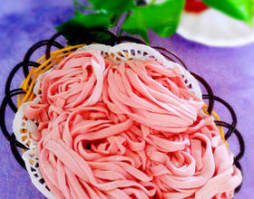 和好的面团,醒30分钟,擀成大薄片,颜色跟粉色的面板一样了,呵呵