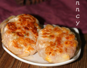 - 13. 锅烧红,加入适量的油,加入蒸好的玉米饼,慢火煎至上、下两面金黄即可。