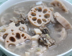 洗干净子排,焯水去掉泡沫。捞起用凉水冲洗干净。切好藕。