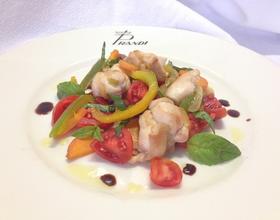 香菜切碎。小西红柿十字切。倒入油 醋 盐
