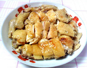 将抹了麻油的熟鸡斩件上碟,一道美味家常菜就大功告成。