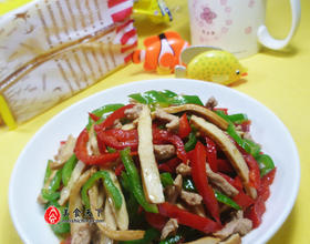 - 1. 材料:青椒(已清洗)、红椒(已清洗)、里脊肉(已切成丝)、香干
