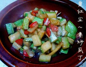 将小瓜切丁,葱、姜切丝。如喜吃肉,可适量加点。