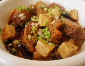 烹入豆瓣酱、生抽、白糖、水兑的汁,再加入较多的水(泡香菇的水),烧开后转小火慢慢煨至收干汁。