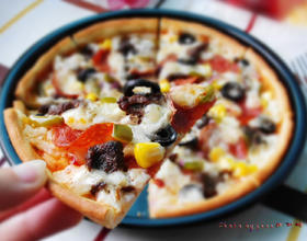 - 12. 洒上部分玉米粒、洋葱、青椒、橄榄;