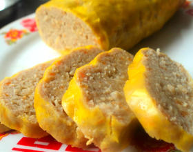 再加入鸡蛋清,淀粉和一点水,将肉泥搅拌均匀,最好摔打一下,使肉有弹性