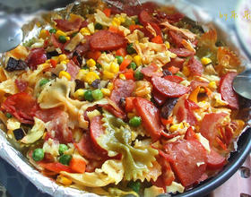 - 12. 半小时后,待蝴蝶面表面金黄色,一道即可做主食吃,又可以做下午茶的焗蝴蝶面就可以享用啦。