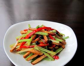 材料:毛芹 香干 豆豉 红辣椒 鸡精 味级鲜 油 盐