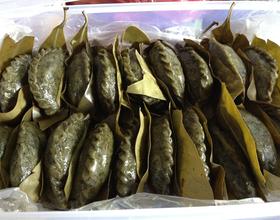 - 8. 全部包好后,给每一个艾粄垫上一片叶子