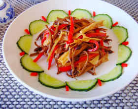 - 9. 继而下姜丝蒜片与腐竹拌炒