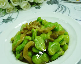 烧锅倒油烧热,下入淘洗好的蚕豆翻炒翻炒。