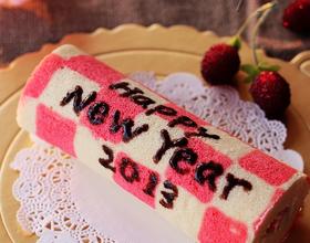 - 19. 可可粉加一点热水化开,用牙签在蛋糕卷上写新年快乐字样就完工了