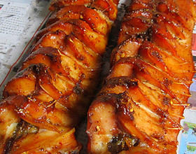 铺上垫子,放上凉干水的鱼熏金黄即可。