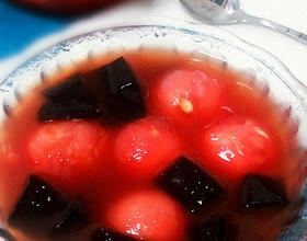 - 10. 把西瓜汁放入切好的龟苓膏中,一碗清爽的西瓜凉粉就做好了,完爆满记甜品的西瓜凉粉!
