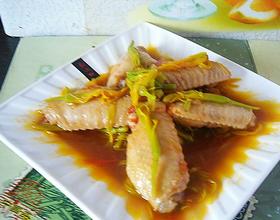 鸡翅适量、泡发好的黄花菜200g、西红柿、洋葱。